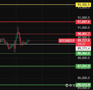 如果今天上不去89370上方,那说明小级别反弹没有力度,再次回踩下方支撑位留意8865-87200-85320这几个位置附近!#BTC走势分析