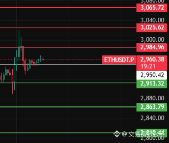 如果今天上不去2950上方,那说明小级别反弹没有力度,再次回踩下方支撑位留意2913-2863-2810这几个位置附近!#ETH走势分析