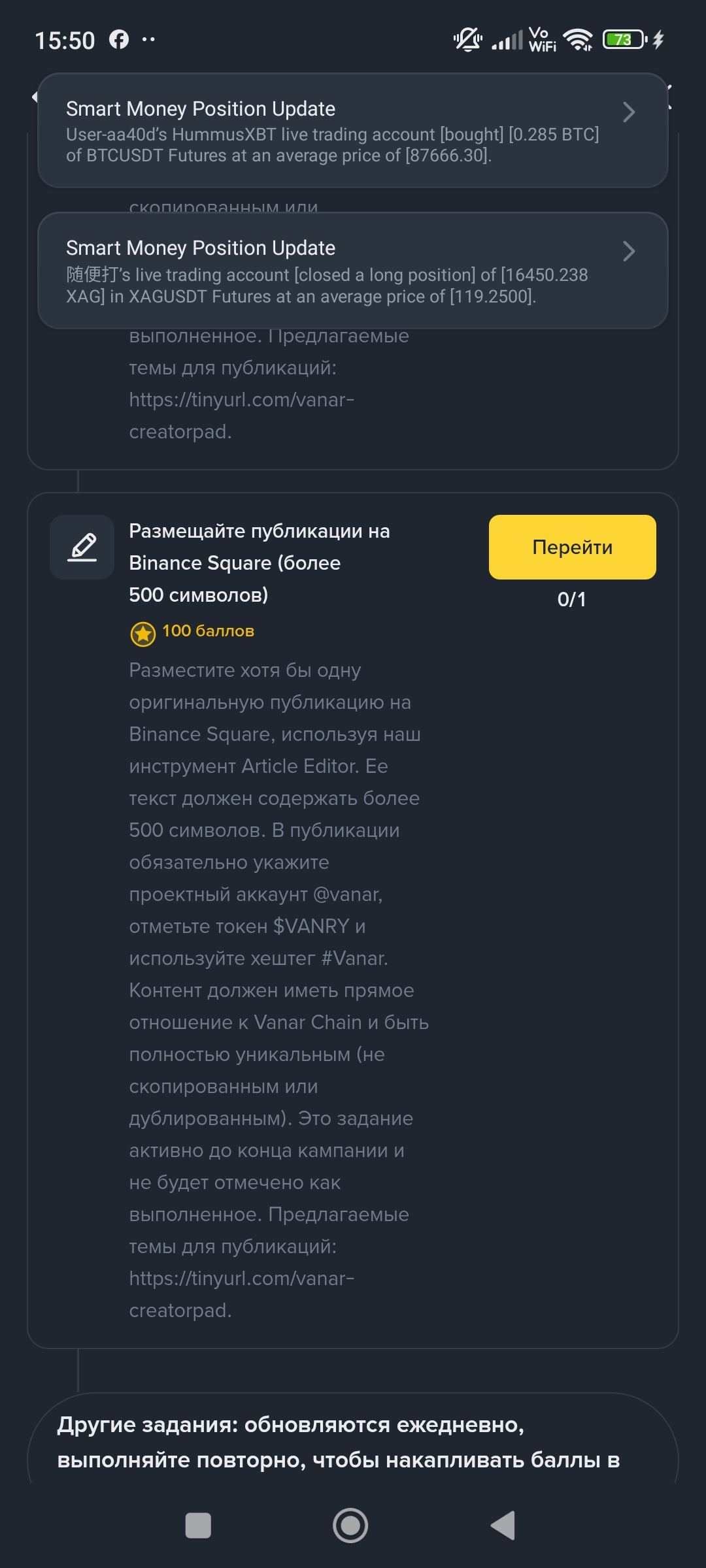 Pubblica almeno un contenuto originale su Binance Square utilizzando il nostro strumento Article Editor. Il suo testo deve contenere più di 500 caratteri. Nella pubblicazione devi indicare l'account del progetto @vanar, contrassegnare il token $VANRY e utilizzare l'hashtag #Vanar. Il contenuto deve avere una relazione diretta con Vanar Chain ed essere completamente unico (non copiato o duplicato). Questo compito è attivo fino alla fine della campagna e non sarà contrassegnato come completato. Temi suggeriti per le pubblicazioni: https://tinyurl.com/vanar-creatorpad.