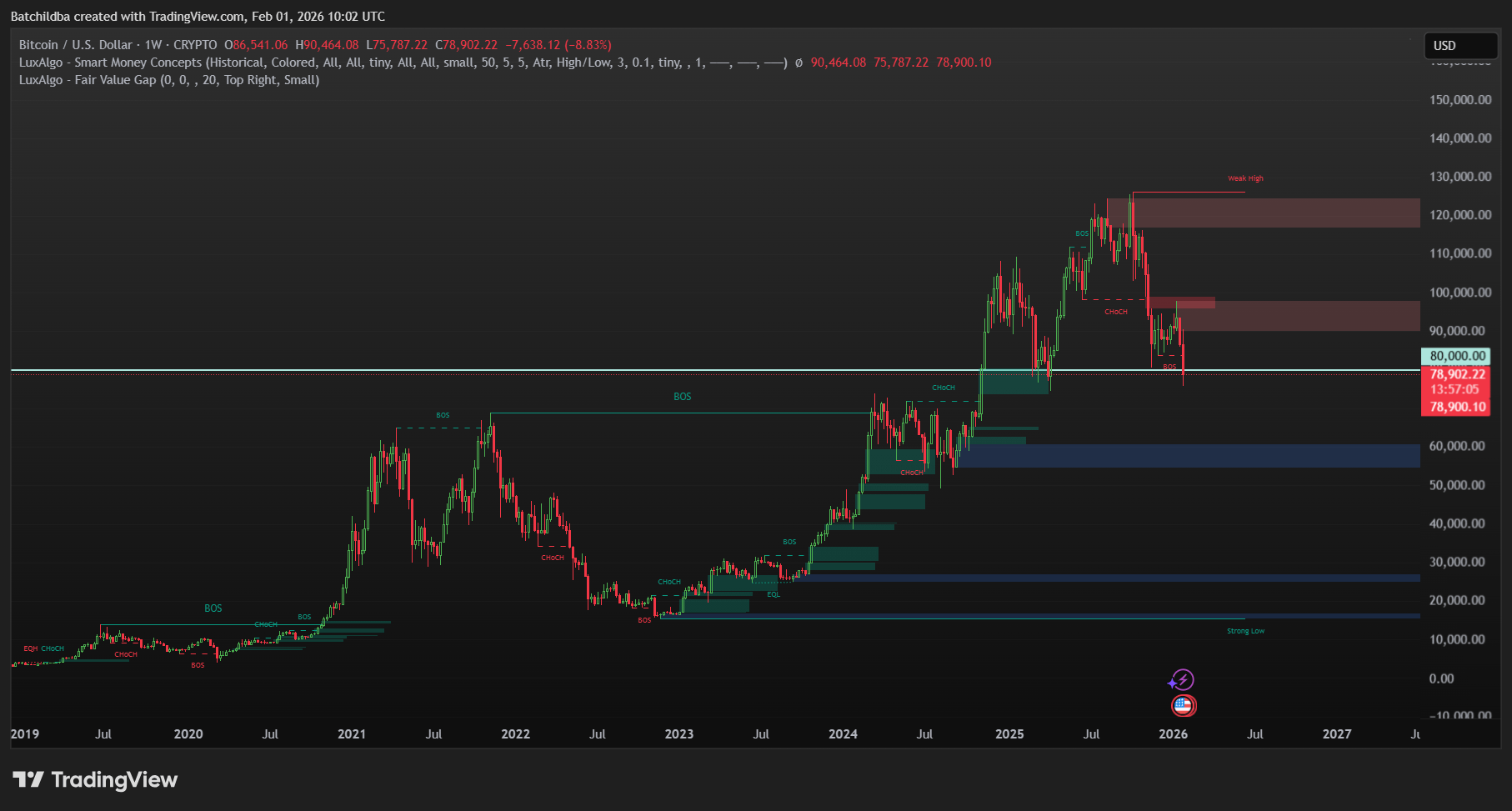 Secondo Burak Kesmeci, uno scenario ribassista richiederebbe una chiusura settimanale al di sotto del livello di supporto di $80,000. Se confermato, l'analista avverte che il momentum ribassista potrebbe intensificarsi, potenzialmente spingendo Bitcoin verso $72,000, $68,000 e infine $62,000 in sequenza. Questo perché questi livelli si allineano con cluster di profili di volume notevoli, rappresentando potenziali aree in cui la liquidità potrebbe accumularsi.