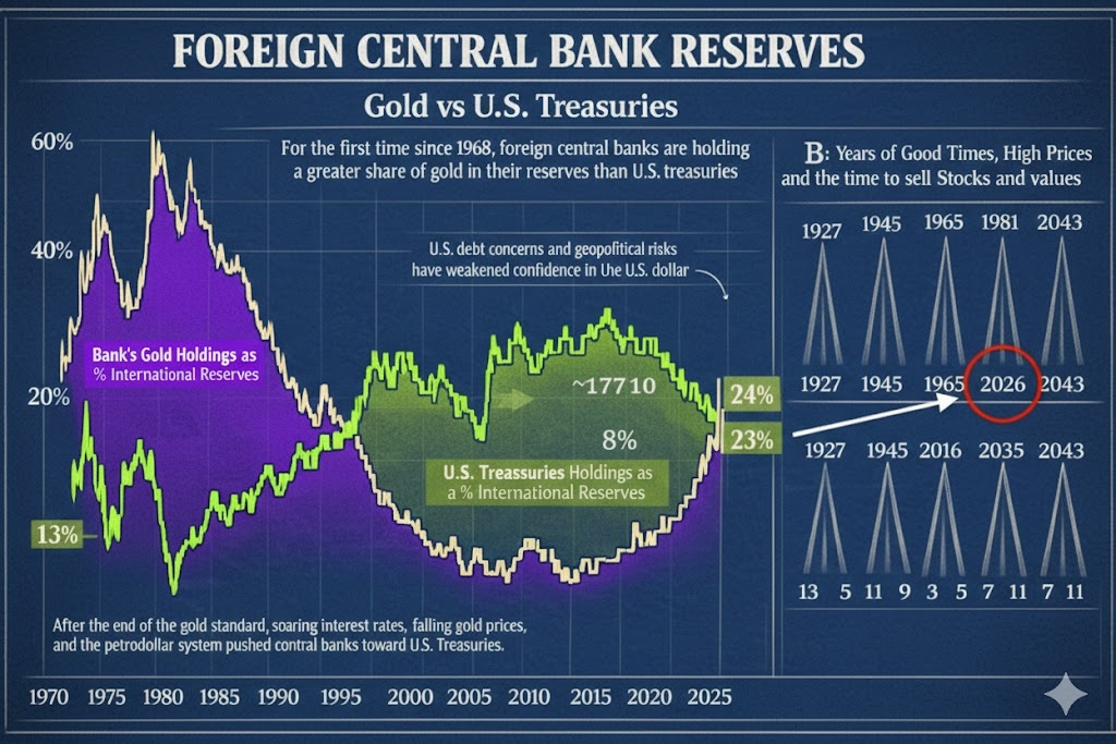 Per la prima volta dal 1968, le banche centrali di tutto il mondo ora detengono piรน ORO che titoli di stato statunitensi nelle loro riserve ๐Ÿฆโœจ