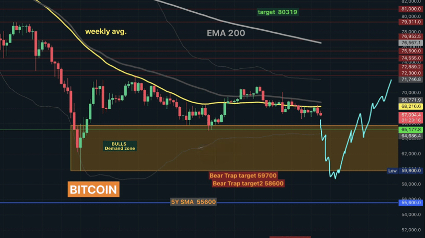 価格は以前の$59,800の安値を巡っており、そのレベルが突破されると、非常に異なる2つの道がすぐに開かれます。