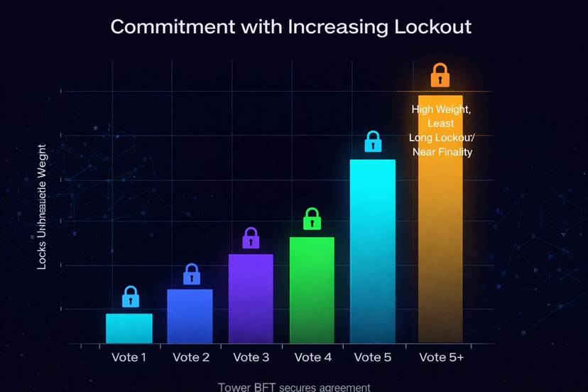 Unlike traditional voting mechanisms where validators can pivot with relative ease, Tower BFT introduces increasing lockouts. Each vote isn’t just an expression of preference — it’s an escalating commitment.