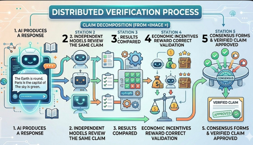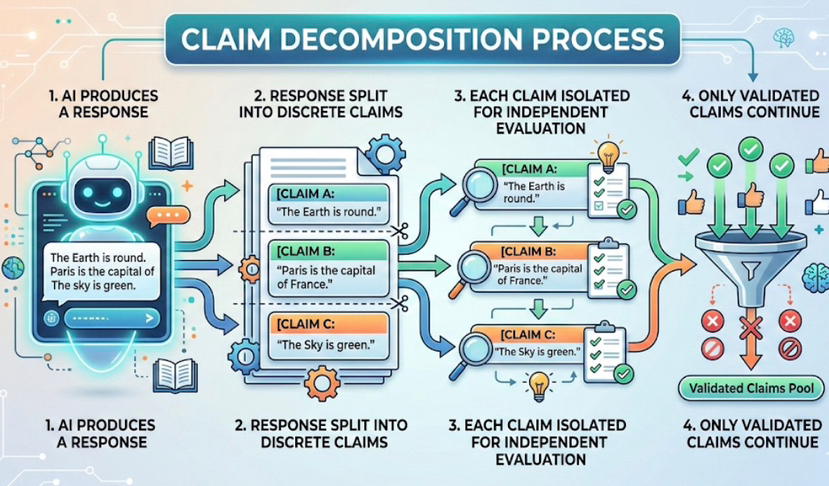 Instead of treating an AI response as a single object, Mira decomposes it into smaller claims. Each claim is evaluated independently across a network of models. What survives isn’t authority or scale, but convergence driven by economic incentives.