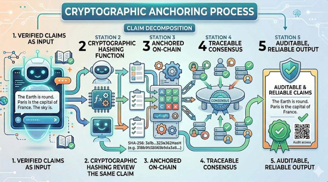 Validated claims are cryptographically anchored, leaving a visible trail of consensus. You’re not asked to trust that something was checked. You can verify that it was.