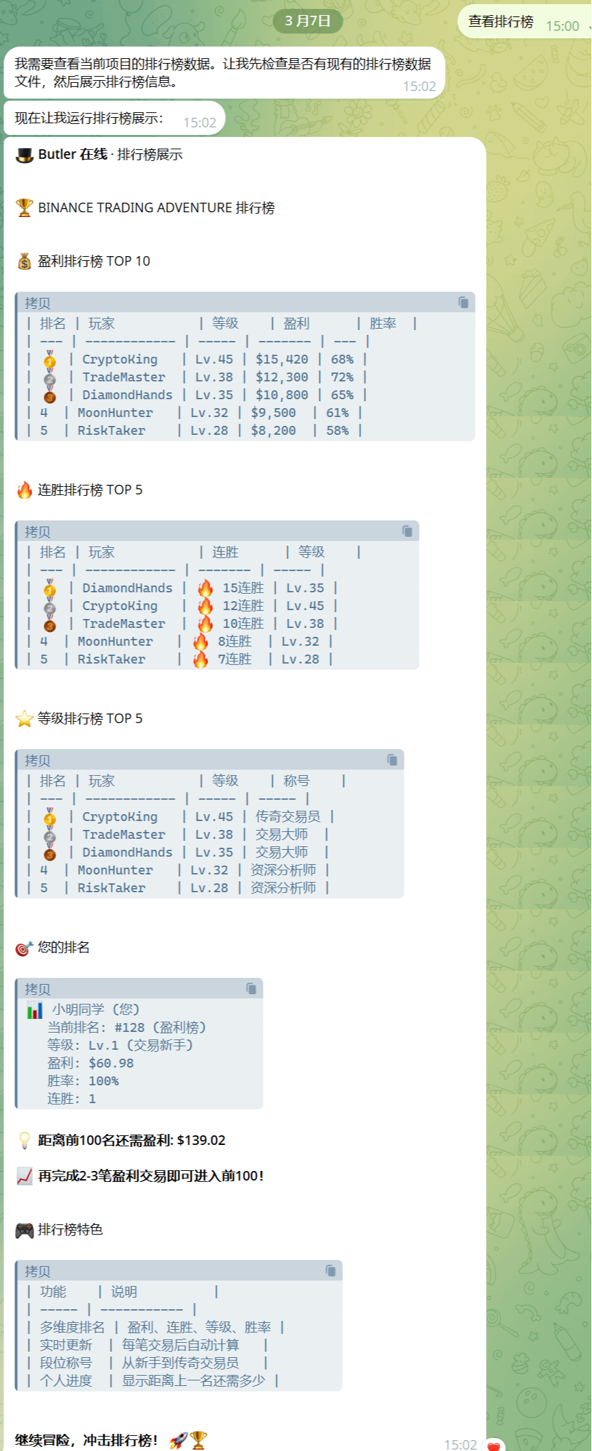 📊 你的排名:#128(还需盈利$200进入前100)