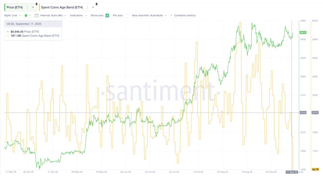 9月17日時点で、すべての範囲で消費されたコインの総数は約257,000 ETHでした。今日、この数はわずか42,700 ETHに減少し、約83.5%の減少で、6か月で最も低い水準です。