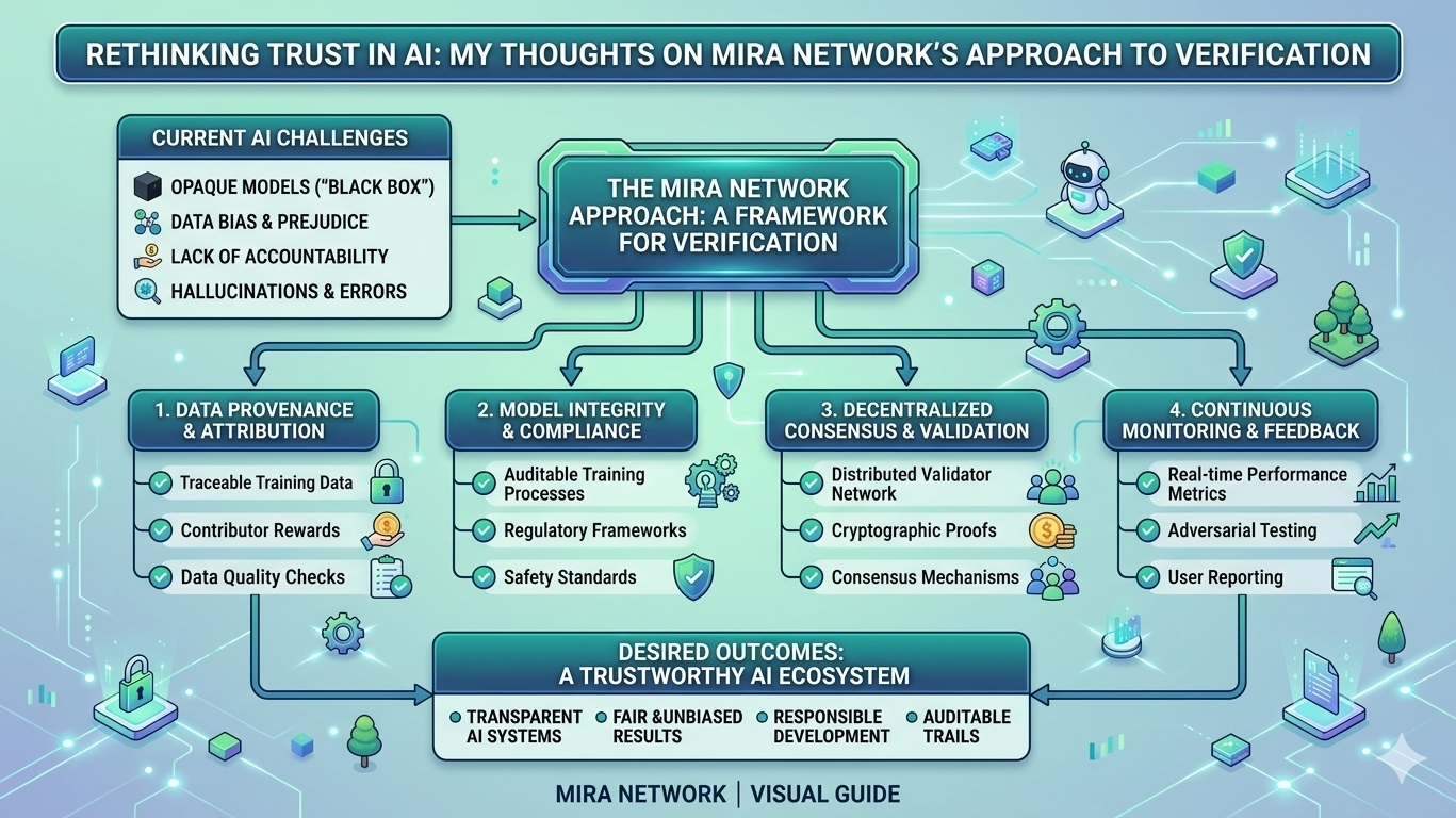 I’ve been thinking about Mira Network for a little while now. Not in a very structured way more like something that kept coming back to mind after I first read about it. At first it sounded like another technical attempt to fix AI problems. But the more I sat with it, the more I noticed the mindset behind it. Instead of trying to make AI appear more trustworthy, it tries to make the information itself verifiable. That subtle shift felt interesting to me.