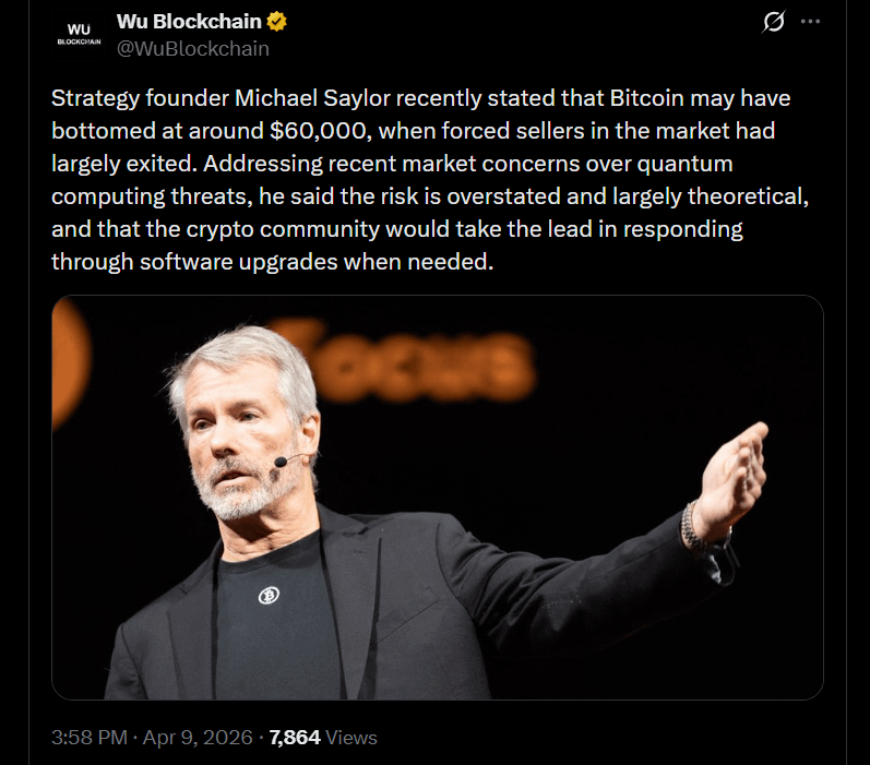 Looking ahead, Saylor also downplayed concerns around quantum computing. He described the risk as distant and manageable, noting that Bitcoin’s open-source structure would allow timely upgrades if threats begin to materialize.