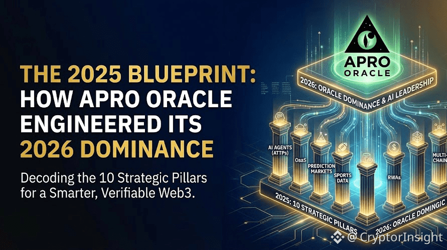 2025年12月31日 – 暗号インフラにとって重要な年の最終日。皆が年末のまとめや大胆な予測を投稿している中、私は新鮮な年次報告スレッドとMediumの記事を読みましたが、驚きました。いつものお決まりの内容ではなく、これは2025年に構築された10の具体的な柱の正当な内訳です。画期的な技術からグローバルエコシステムの成長まで。私は一年中APROを注意深く追ってきましたが、これをこのように示されると、なぜ私が彼らのAI強化オラクルがRWAs、AIエージェント、予測市場、そしてDeFiのデータフィードを革命化することに非常に楽観的であるかが明確になります。