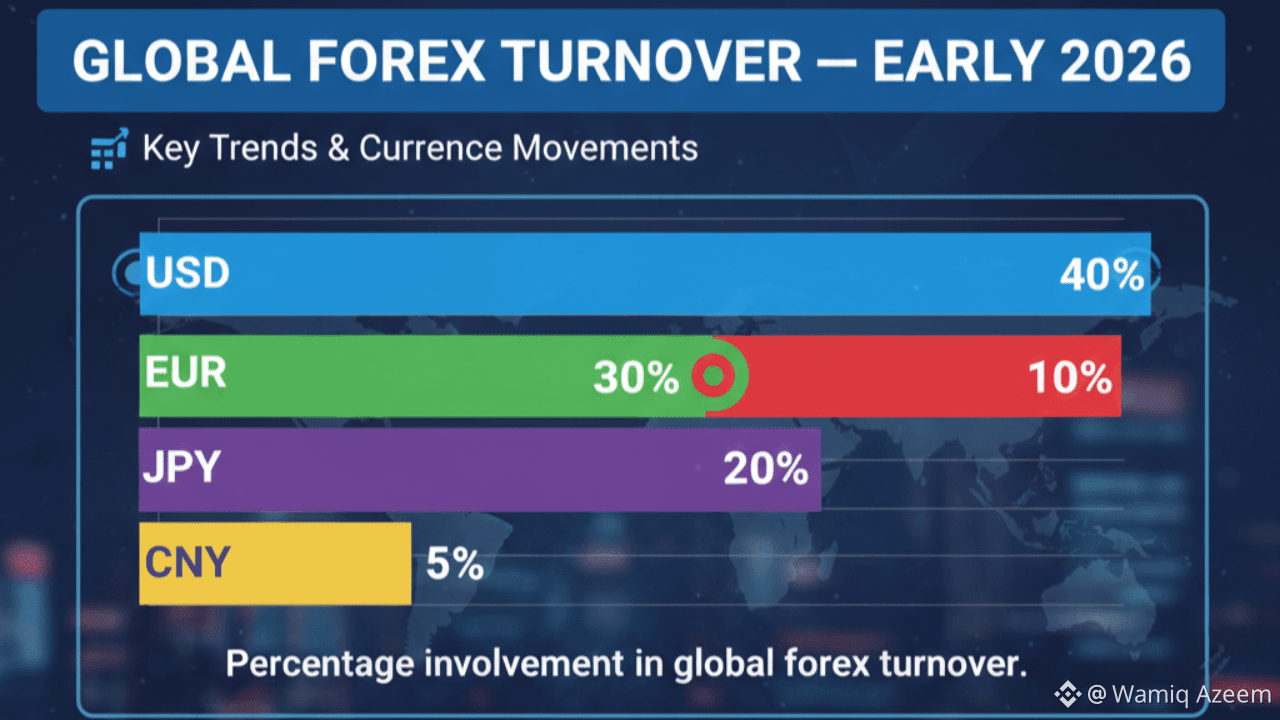 世界の外国為替の取引量における割合の関与 — 各通貨がどれくらい頻繁に