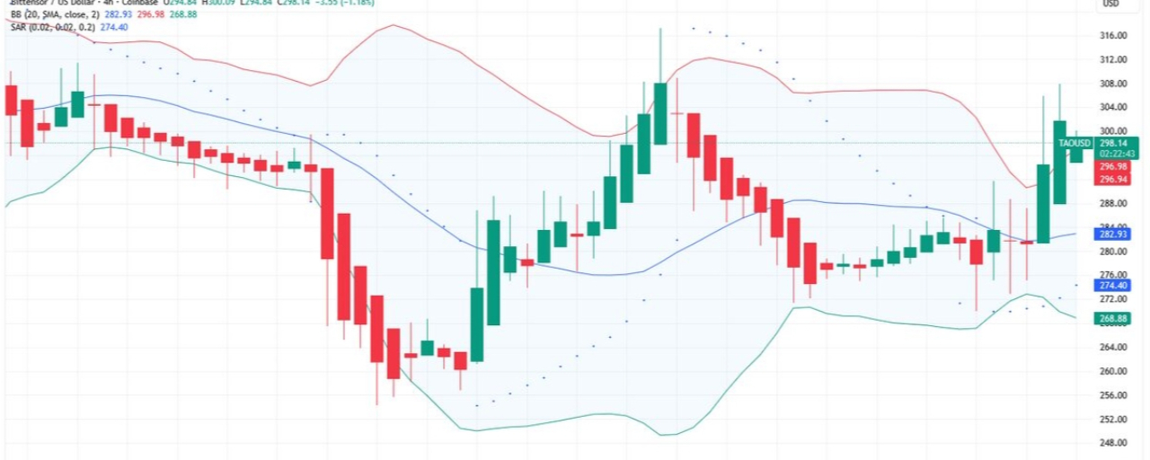$TAO — Bittensor governance token. Decentralized ML network fundamentals intact despite price action. Watching $290 support. Break below could trigger liquidation cascade to $260-270, but hold above sets up potential short squeeze back to $340-360.