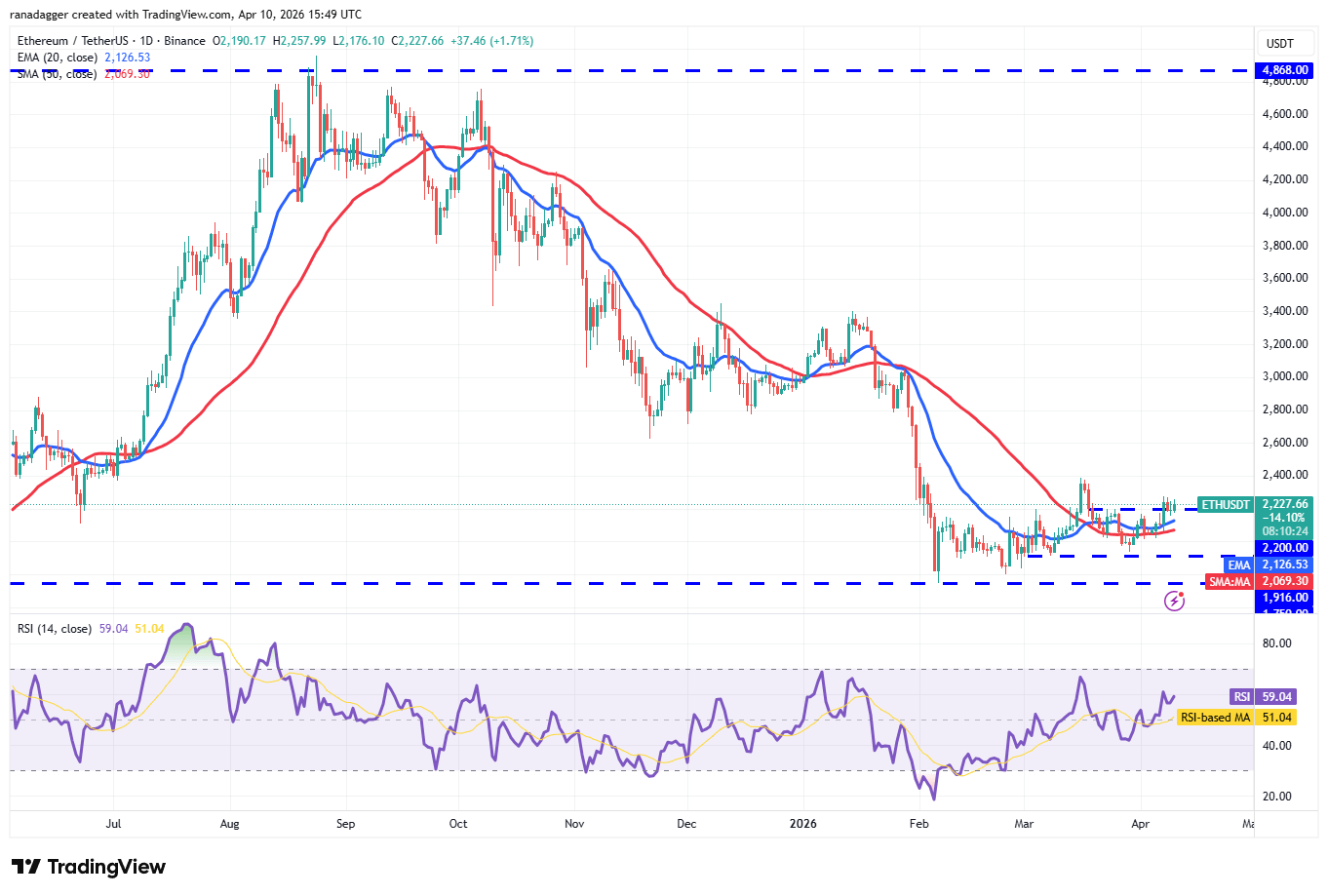 Pero ojo, que aquí no venimos a pintar pajaritos en el aire sin ver la realidad completa. ⚠️ La jugada se nos puede arruinar si el precio pierde fuerza y cae por debajo de las medias móviles. Si eso pasa, significa que los vendedores están ganando la partida en las alturas y que el Ether podría pegarse un resbalón feo hasta buscar el soporte de los $1,916. Así que la clave ahora mismo es observar si esos $2,200 aguantan el peso; es la línea en la arena que define si nos vamos a la luna o si nos toca esperar un poco más abajo. En este juego, la paciencia y el ojo clínico lo son todo, así que mantente alerta a cada vela del gráfico.
