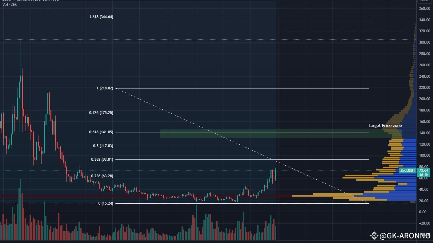 Możesz spojrzeć na wykres ZEC. Przede wszystkim, przez długi czas w latach 2023-2024 pozostawał w strefie akumulacji, więc handlowano tam dużymi wolumenami.