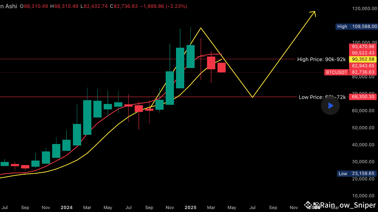 $BTC zamknął swoją marcową świecę, przygotowując ruch na kwiecień—bez niespodzianek. Trend jest jasny na następne 1-2 miesiące: boczny z korektą w dół.