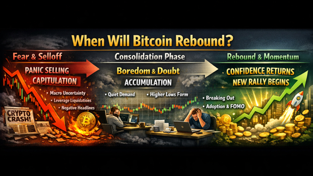 The most honest answer is that Bitcoin begins rebounding when the question itself starts to lose urgency. When price stops collapsing on bad news, when fear feels repetitive instead of shocking, and when the market becomes bored of being bearish, the groundwork is already in place.