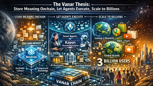 W materiałach samego Vanara stos technologiczny przedstawiany jest jako pięć warstw, gdzie L1 jest podstawą, a inteligencja wznosi się poprzez pamięć semantyczną i rozumowanie do automatyzacji i przepływów aplikacji przemysłowych, a to, co wyróżnia się, to nie słownictwo marketingowe, ale kierunek podróży, ponieważ łańcuch jest pozycjonowany jako miejsce, gdzie dane są kompresowane, strukturalizowane i udostępniane maszynom, a nie tylko rejestrowane jako surowe zdarzenia, co jest dokładnie przesunięciem, którego można by się spodziewać, jeśli końcowym celem są „aplikacje, które wydają się normalne dla miliardów użytkowników”, a nie „aplikacje, które tylko tolerują użytkownicy zaawansowani”.