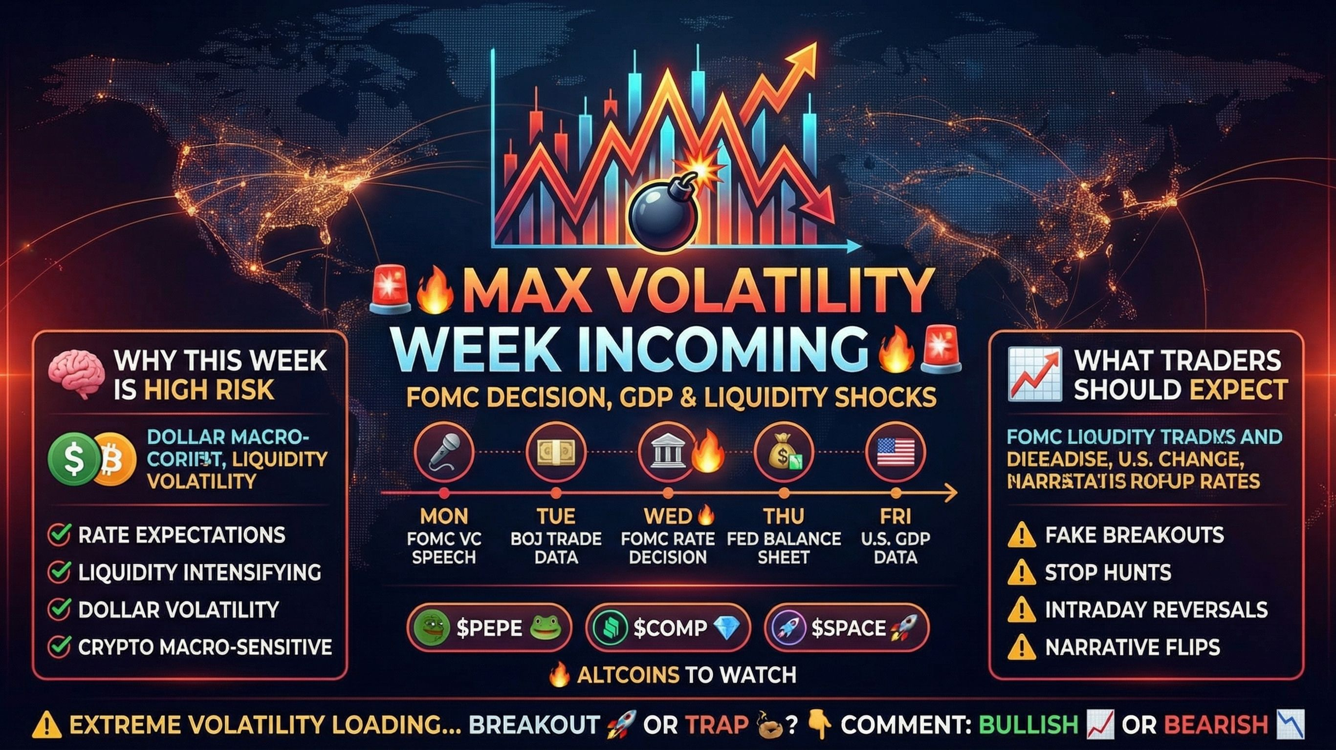 Kalendarz makro jest przepełniony 📅💣, a rynki wchodzą w tydzień wysokiego wpływu, który może wstrząsnąć kryptowalutami i globalnymi aktywami ryzykownymi. 🌍📊