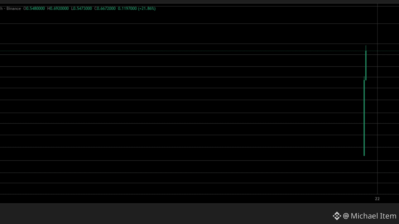 OPNUSDT na wykresie 1-godzinnym właśnie wydrukował agresywną świecę impetową, popychając cenę z obszaru 0.54 w górę w kierunku 0.69, obecnie handlując w okolicach 0.66–0.67 USDT.
