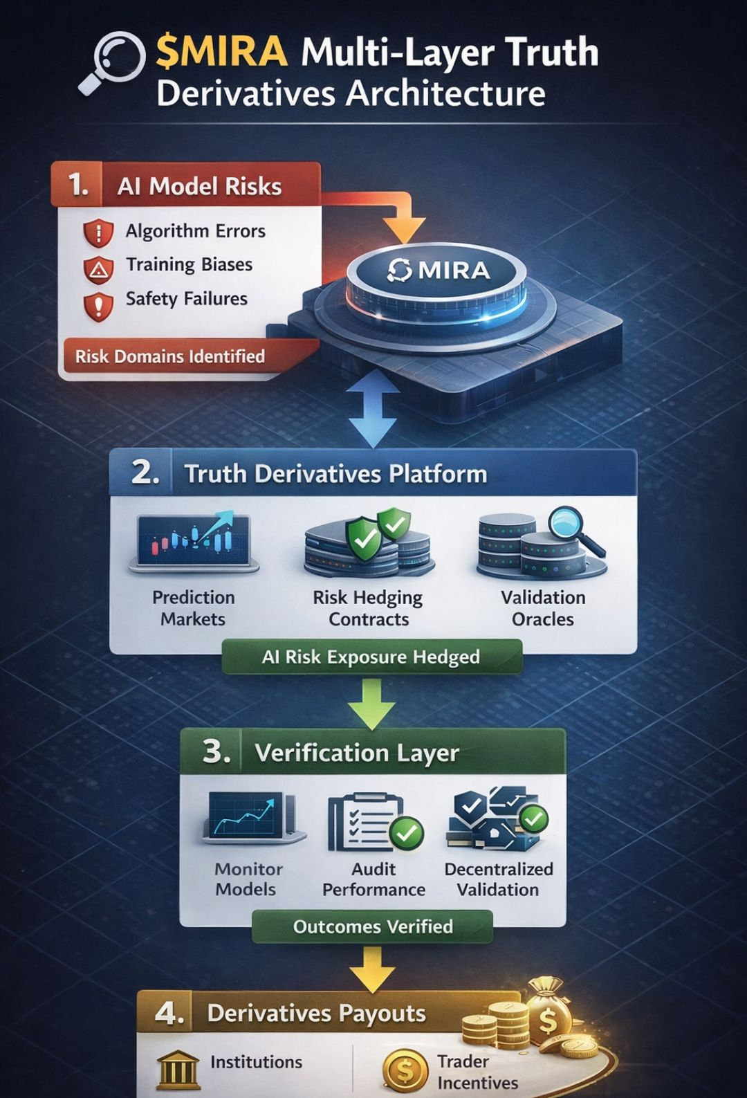If $MIRA were to build a multi-layer Truth Derivatives market, the objective wouldn’t be to speculate on AI narratives. It would be to financialize specific model failure domains as structured contracts.