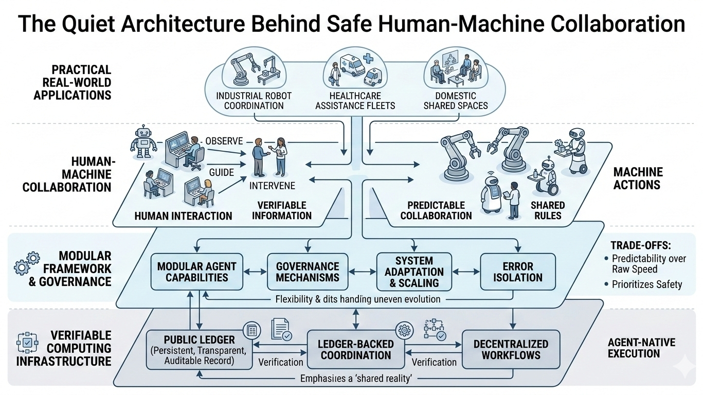 In terms of real-world usage, I see the protocol supporting a wide variety of applications. In industrial settings, it could coordinate multiple robotic arms performing interdependent tasks while ensuring that every movement is verifiable and logged. In healthcare, it could manage fleets of assistance robots, tracking patient interactions and maintaining safety standards without requiring staff to micromanage every robot. Even in domestic contexts, a modular, ledger-backed infrastructure could allow multiple home assistants or cleaning robots to operate in shared spaces without conflict or redundancy. The design choices clearly reflect an understanding of these practical challenges, not just theoretical possibilities.