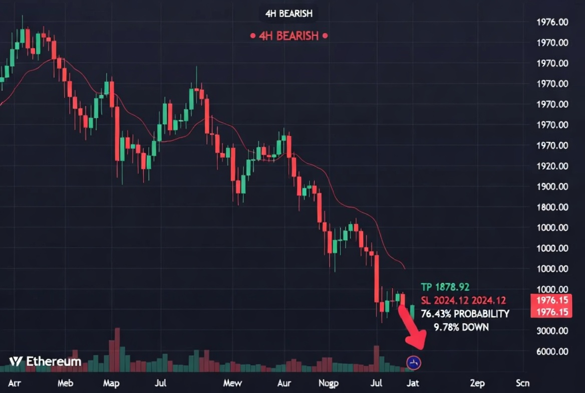 Aktualna cena ETH 1976,15 USDT, krzyż śmierci w podwójnym okresie 1 godziny + 4 godziny, silny sygnał spadkowy potwierdzony!