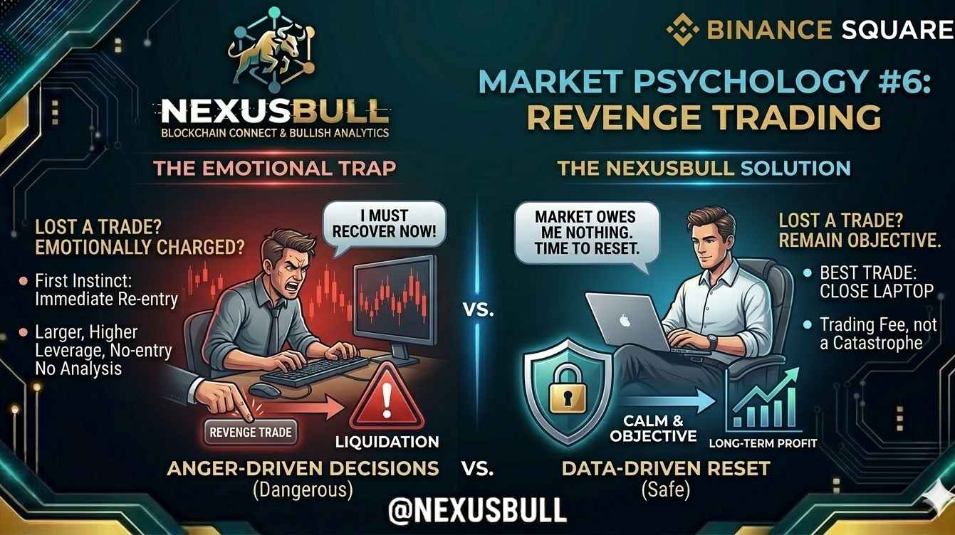 Zasada #NexusBull : Jeśli czujesz gniew lub frustrację po stracie, jesteś "emocjonalny". Nie handluj, dopóki nie uspokoisz się i nie będziesz obiektywny. Strata to "opłata za naukę"; nie przekształcaj jej w katastrofę, próbując się zemścić na wykresie.