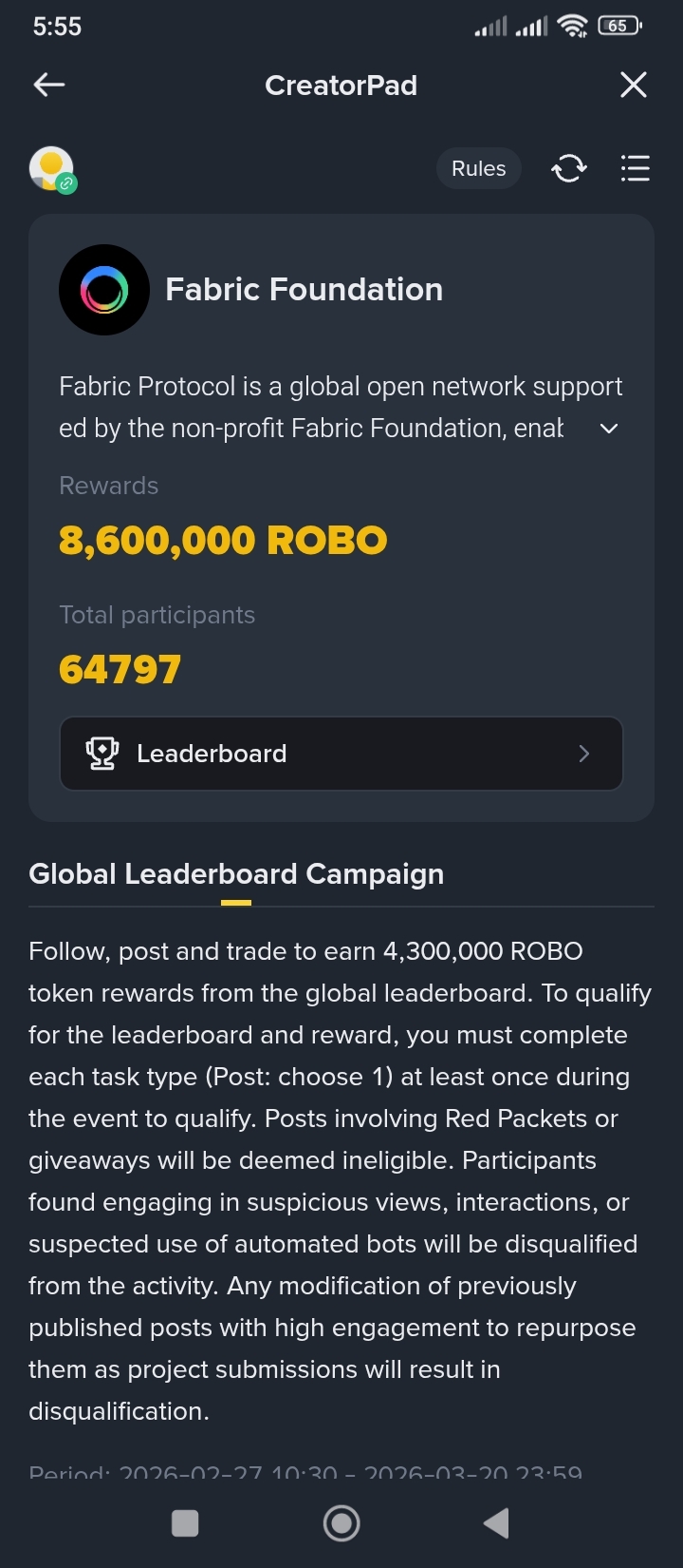 যযারা জয়েন করেননি এখনি জয়েন করুন। এটাটে আশা করি ভালো অফার পাআেন।binance best flat from. Post at least one original piece of content on Binance Square using our Article Editor, with a length of more than 500 characters. The post must mention the project account @FabricFND, tag token $ROBO, and use the hashtag #ROBO. The content must be strongly related to Fabric Foundation and $ROBO and must be original, not copied or duplicated. This task is ongoing and refreshes daily until the end of the campaign and will not be marked as completed. #RoboTokenUSD