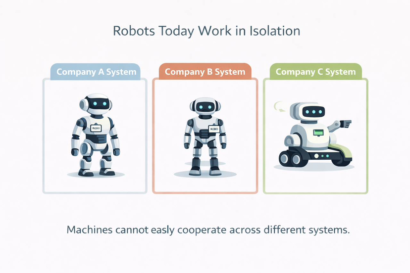 Większość zaprojektowanych robotów ma na celu działanie w ramach jednego systemu firmy. Firma opracowuje robota, instaluje na nim swoje oprogramowanie, a następnie ten robot może działać tylko w ramach tej firmy.