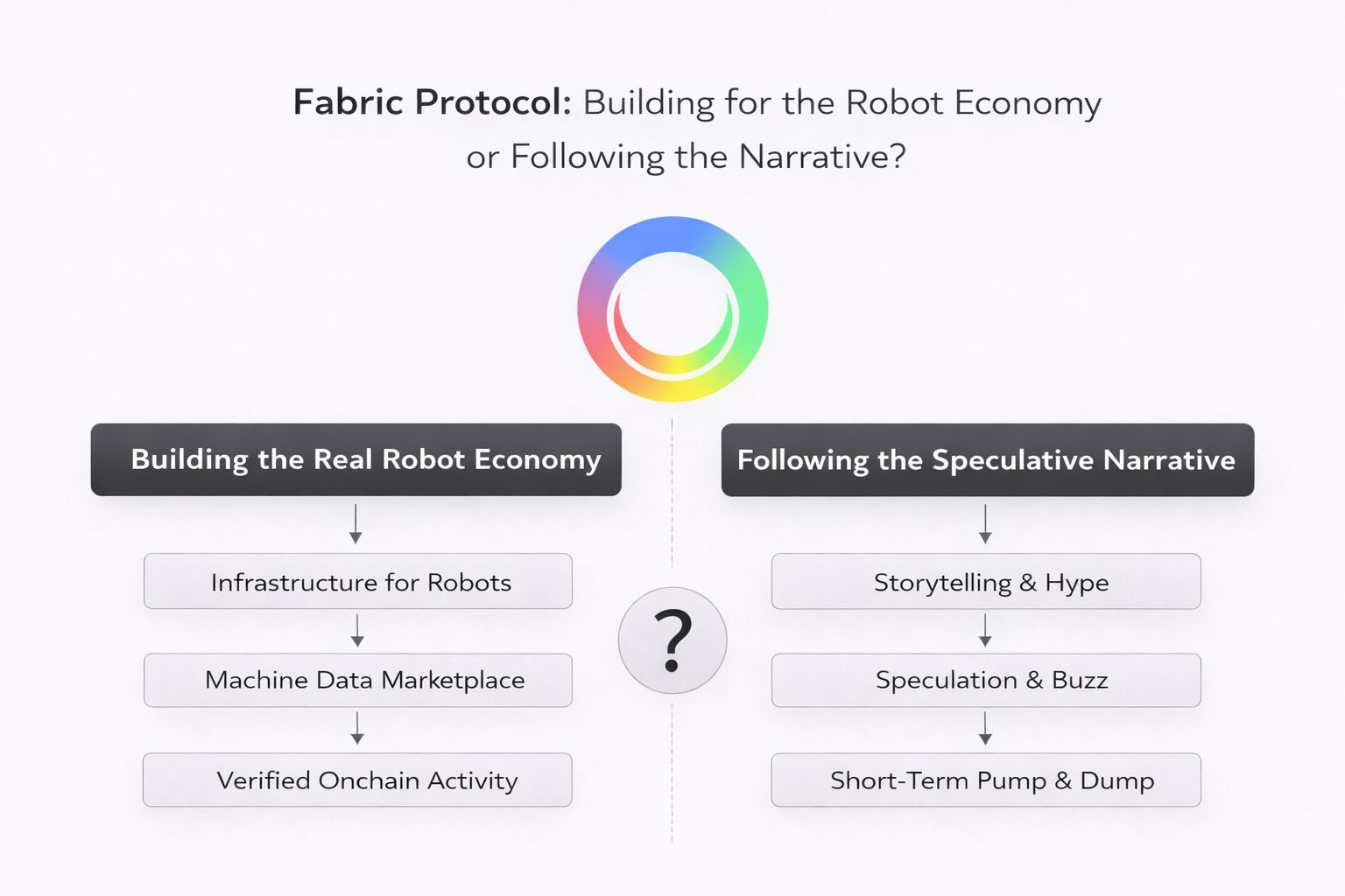Với mình, điểm đáng theo dõi nhất ở Fabric không phải là họ kể chuyện robot hay tới đâu. Mà là họ đang thử xây phần luật chơi phía dưới cho robot economy. Trong một market đầy nhiễu, đó là hướng đi đáng tôn trọng hơn nhiều so với việc chỉ cố bám trend.