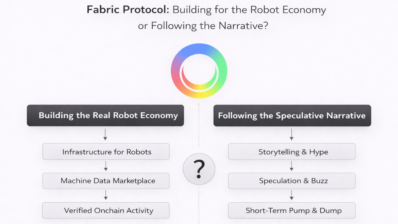 Nhưng theo cách mình nhìn, Fabric không chỉ đang ăn theo narrative robot. Thứ họ đang thử dựng là phần hạ tầng để robot economy, nếu thật sự hình thành, còn có chỗ đứng vững hơn một câu chuyện.