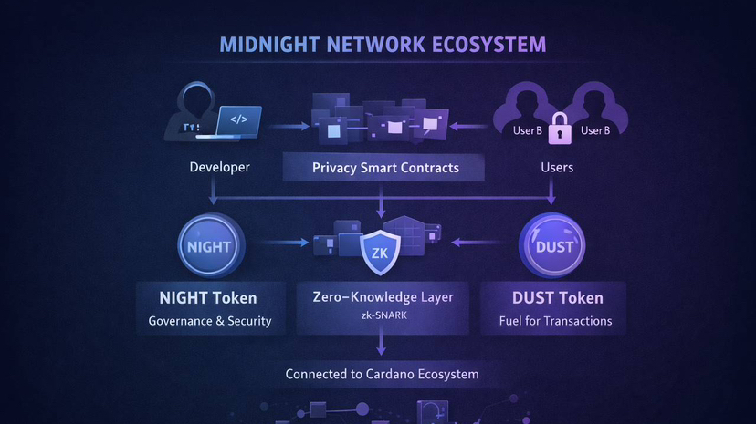 Inną główną opcją projektowania jest model ekonomiczny Midnight. Ekosystem oparty jest na tokenie NIGHT, tokenie zarządzania i kapitału sieci. Posiadanie NIGHT służy do zablokowania systemu i tworzy rodzaj niezależnego zasobu znanego jako DUST, który obsługuje osobiste transakcje i wykonania. Ta wymiana między wartością zarządzania a kosztami operacyjnymi nie jest standardem projektowania blockchaina i ma na celu zapobieganie wyciekom wrażliwych metadanych poprzez opłaty transakcyjne.