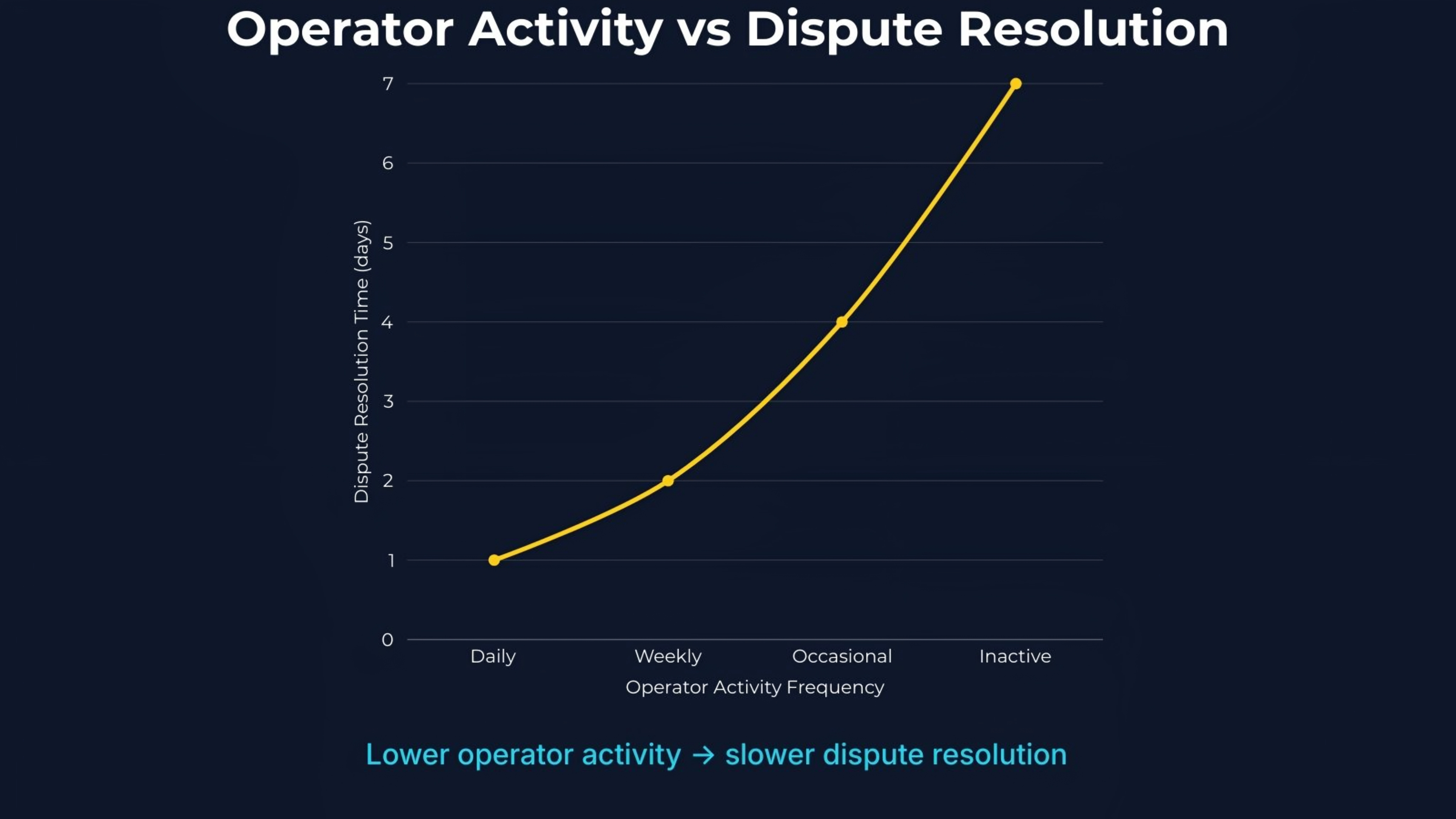 If inactivity predicts slower dispute resolution and rising edge cases, operator presence is already a variable the protocol isn't measuring.