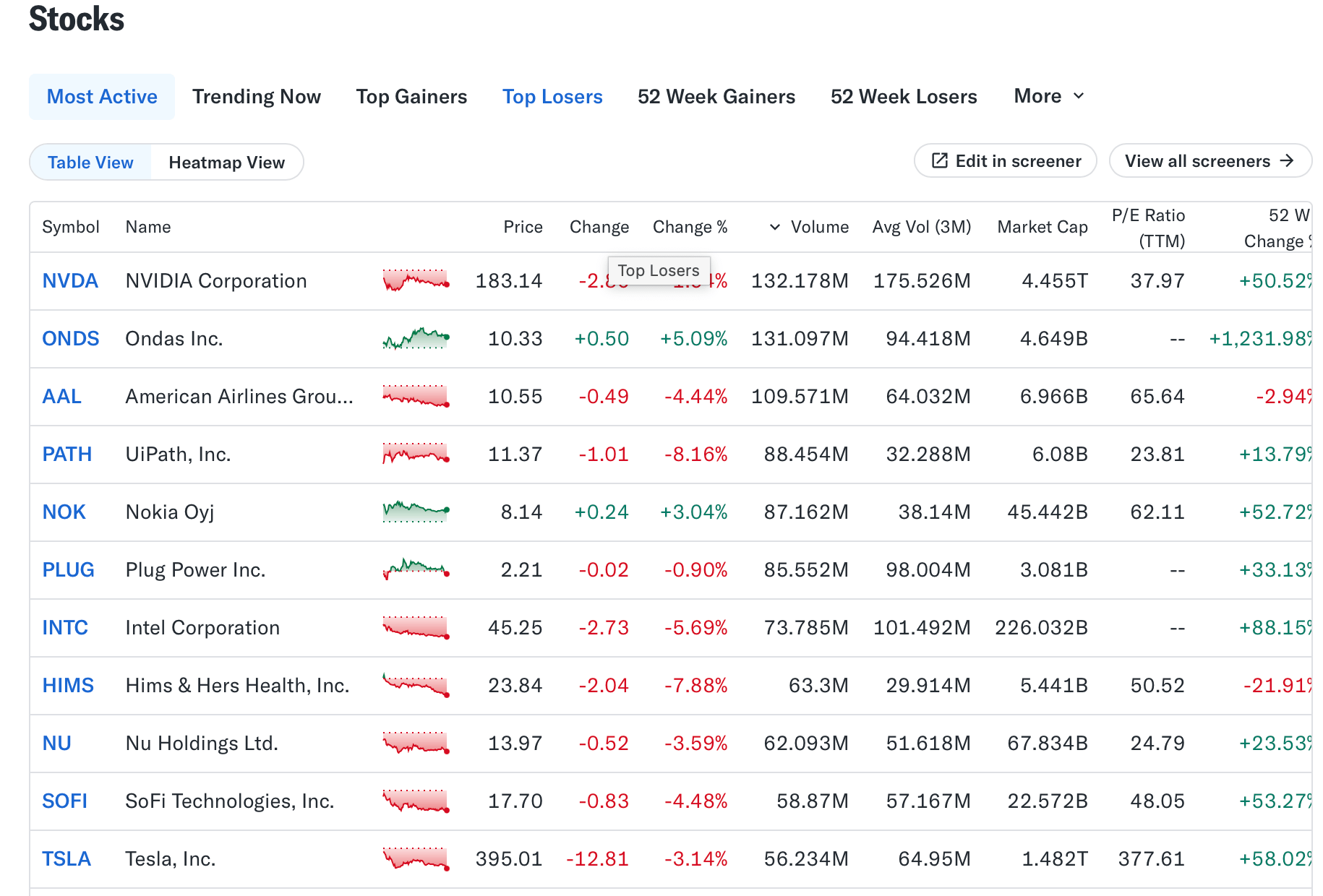 The US stock market remains unstable, with S&P Futures down 0.03% and Dow Futures down 0.12%. Nvidia (NVDA) shares have corrected by 1.54% to $183, American Airlines Group (AAL) by 4.44% to $10.55, Intel Corporation (INTC) by 5.69% to $45.25, and Tesla (TSLA) by 3.14% to $395 on the day, according to Yahoo Finance data.