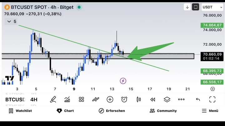 Tego typu zachowanie ceny jest dokładnie tym, czego szukają zdyscyplinowani traderzy. Czyste ponowne testowanie złamanej lub szanowanej linii trendu często potwierdza, że struktura rynku pozostaje nienaruszona. Zamiast załamać się poniżej poziomu, $BTC pokazuje odporność, sygnalizując, że nabywcy wciąż bronią trendu.