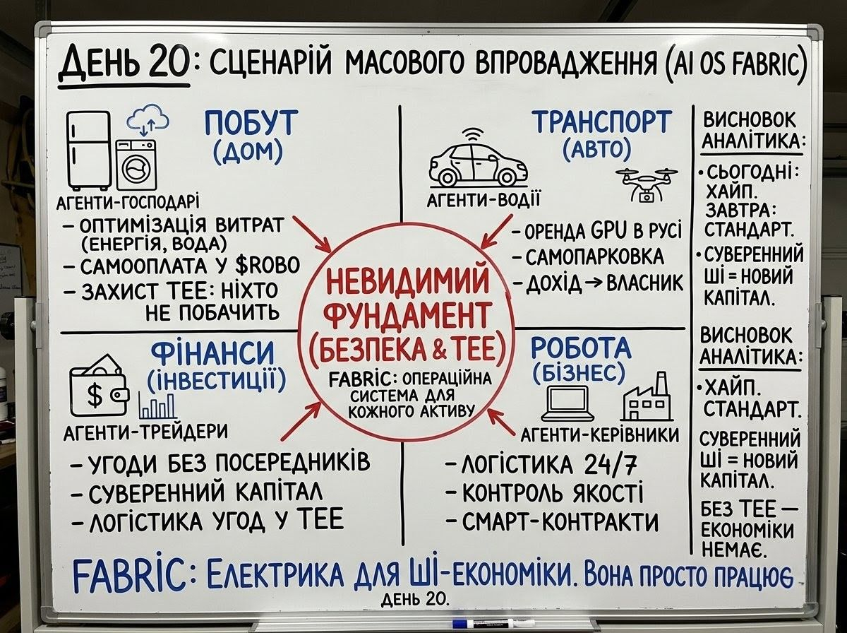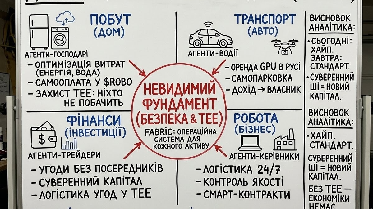 Дивлюсь на цей хаос сьогодні і розумію: ваш автомобіль у 2031-му — це не просто залізо. Це обчислювальний вузол. Поки ви в спортзалі, він здає свої потужності в оренду через мережу Fabric, заробляючи собі на парковку та страховку. Це і є Machine Economy в дії. Код працює на код. Машина платить машині. А ви? Ви нарешті виходите з ланцюжка рутинних мікроплатежів.