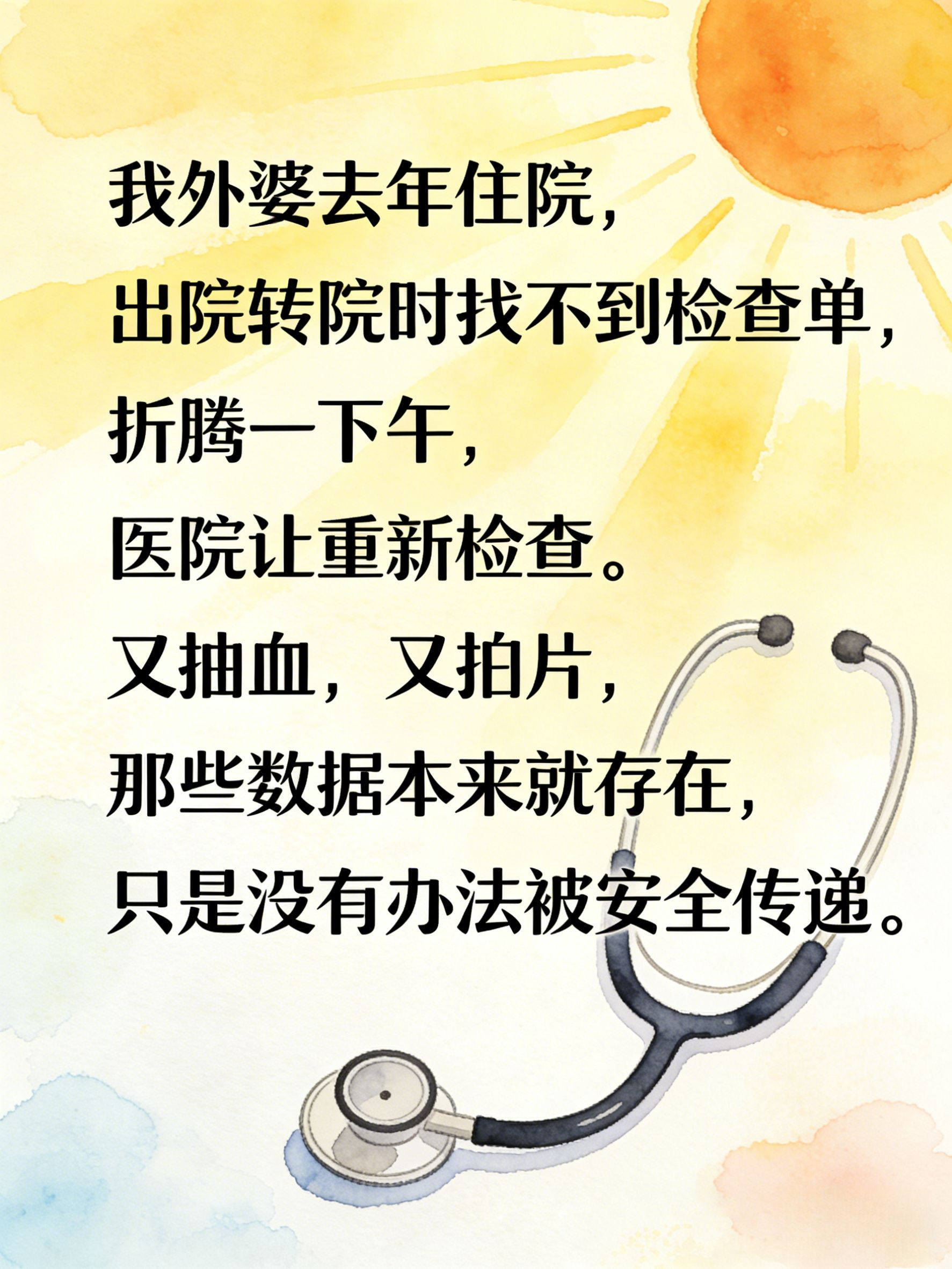 我外婆去年住院,出院的时候要转院,医生问有没有带病历本。找了半天,有几张检查单找不到了。