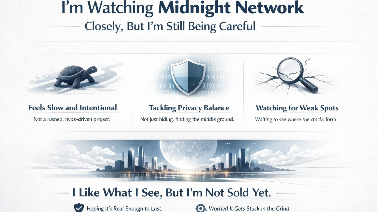what i actually think is this. Midnight is probably one of the most technically serious attempts at compliant programmable privacy so far. the architecture is real. the design is thoughtful. the use cases, healthcare, finance, supply chains, real world assets, are massive. if it works, it matters.