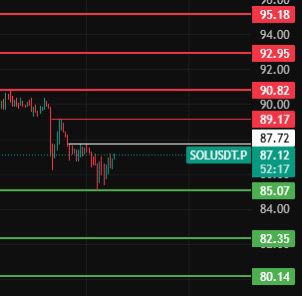 SOL dzisiaj zwróć uwagę na poziom 87, tylko jeśli utrzyma się powyżej tego poziomu przez 4 godziny, zacznie się korekta, zwróć uwagę na poziomy oporu 90-93-95 w ich okolicy!