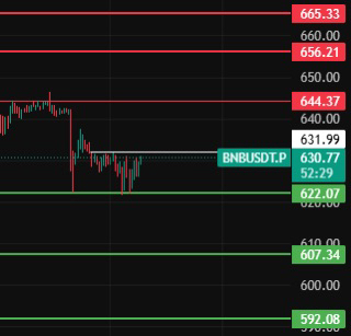 BNB dzisiaj zwróć uwagę na poziom 622, tylko jeśli utrzyma się powyżej tego poziomu przez 4 godziny, zacznie się korekta, zwróć uwagę na poziomy oporu 644-656-665 w ich okolicy!
