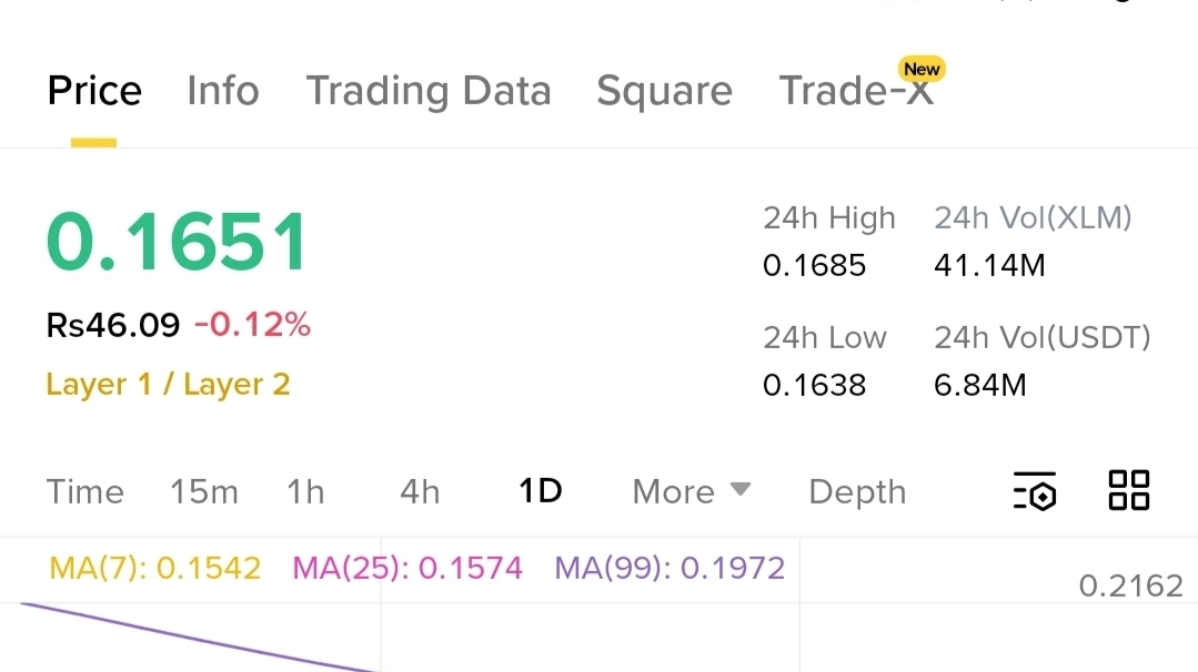 Wykres Stellar (XLM) na Binance pokazuje klasyczną fazę konsolidacji, co sugeruje, że rynek może się przygotowywać do decydującego ruchu. Obecnie handluje w okolicach $0.1651, XLM unosi się blisko kluczowej strefy oporu krótkoterminowego, jednocześnie utrzymując stabilność po niedawnej zmienności.