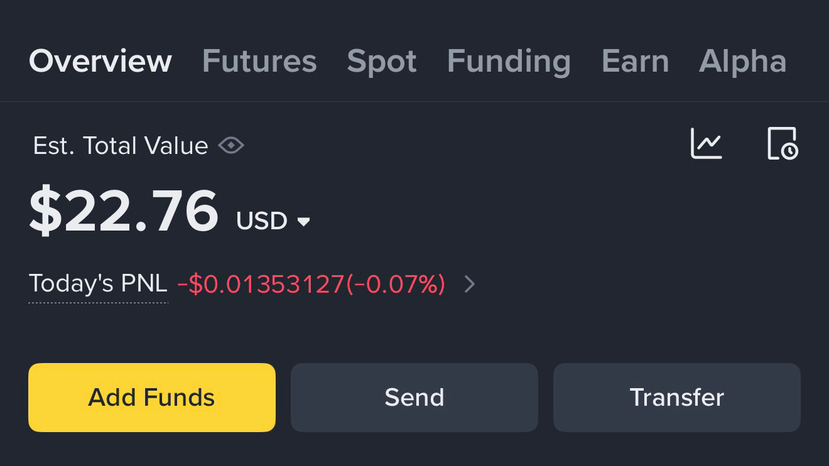 W tej chwili moje konto wynosi około $22 z prawie żadną zmianą. I szczerze mówiąc, to w porządku. Nie zamierzam spieszyć się z transakcjami ani wymuszać wejść. Małe konta natychmiast karzą błędy, więc każdy ruch musi mieć sens.