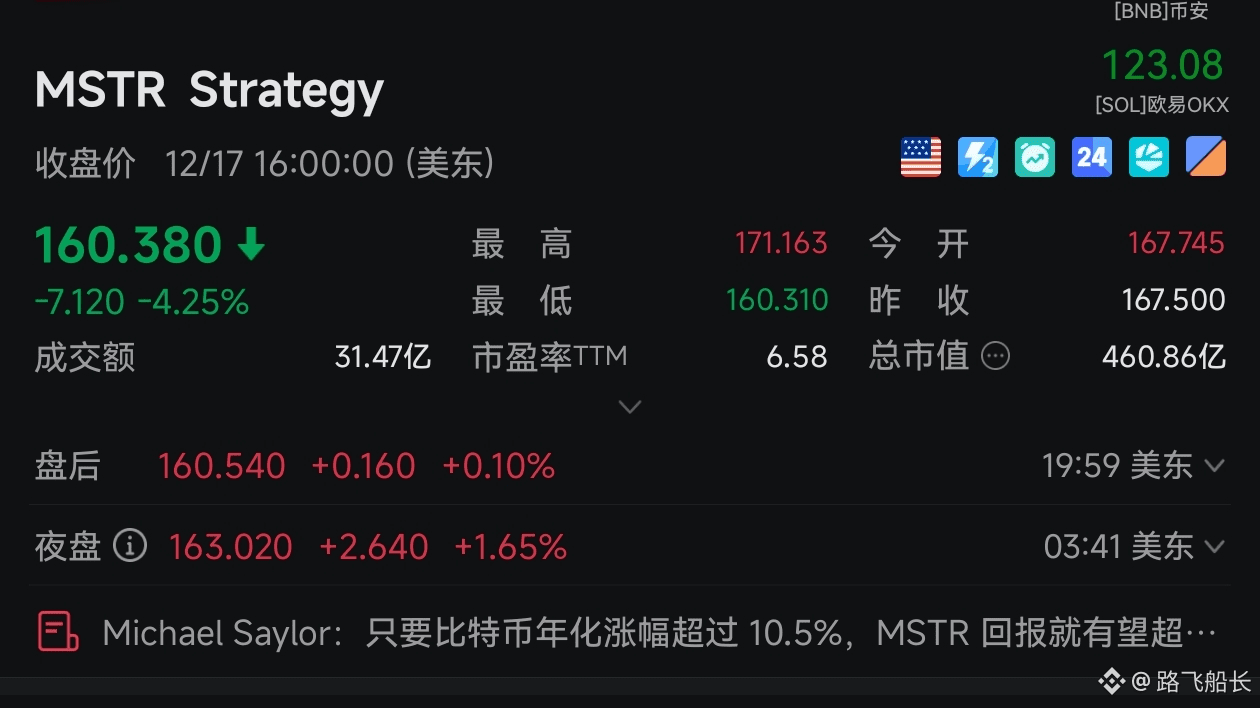 资产缩水: 比特币暴跌导致MSTR资产净值进一步缩水,股价继续暴跌。