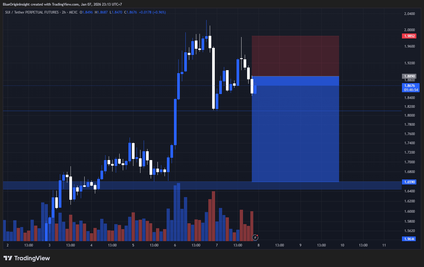 $SUI właśnie wykonał silny, jednoznaczny ruch impulsywny, przełomując w sposób czysty powyżej poprzedniej strefy akumulacji w okolicach 1,65 przy rosnącym objętości, co jest jasnym potwierdzeniem aktywnego napływu kapitału.