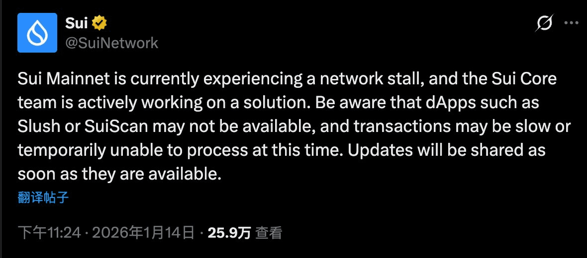 Czas chiński, około 14 stycznia o 23:30, @SuiNetwork nagle zatrzymał blokowanie, wszystkie DApp i transakcje na chwilę utknęły w martwym punkcie.