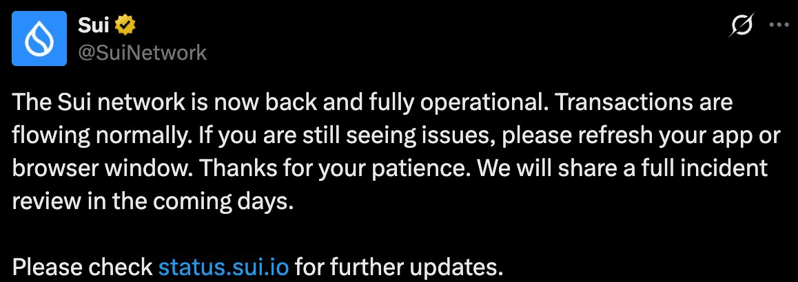 Czy sieć Sui „zawiesiła się” na 6 godzin wczoraj?