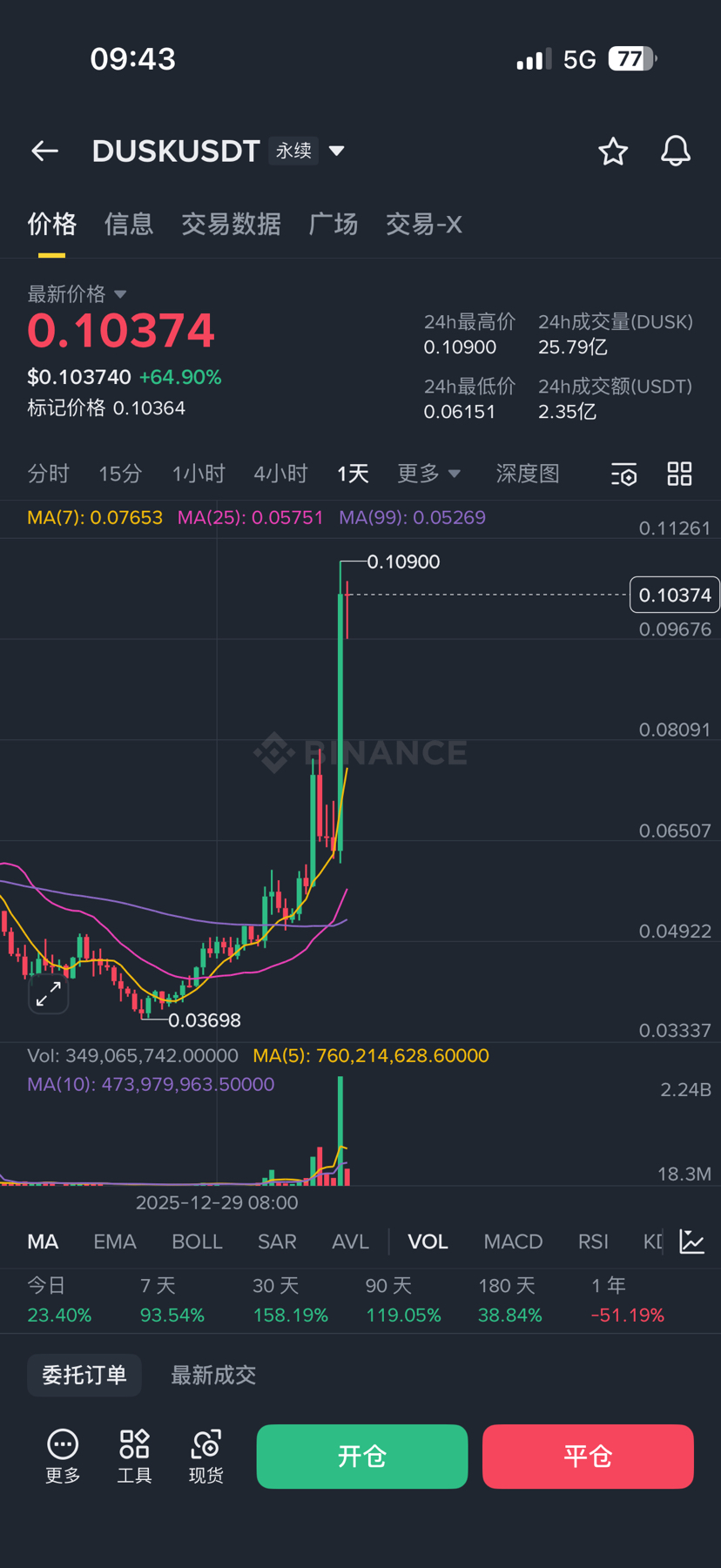 Dusk Network(DUSK)@Dusk W styczniu 2026 roku wchodzi w kluczowy okres: aktualizacja głównej sieci wkrótce się rozpocznie, pełna wersja Hyperstaking, platforma emisji aktywów Zedger oraz uruchomienie Lightspeed L2 są w roadmapie Q1-Q2. Cena 0,10 USD, kapitalizacja rynkowa 5100 milionów USD, w ciągu ostatniego tygodnia podwoiła się, a wolumen transakcji znacznie wzrósł. Projekt nie jest już „koncepcją akcji prywatnych łańcuchów bloków”, ale prawdziwym protokołem na poziomie instytucjonalnym, który produkuje rzeczywistą produktywność.