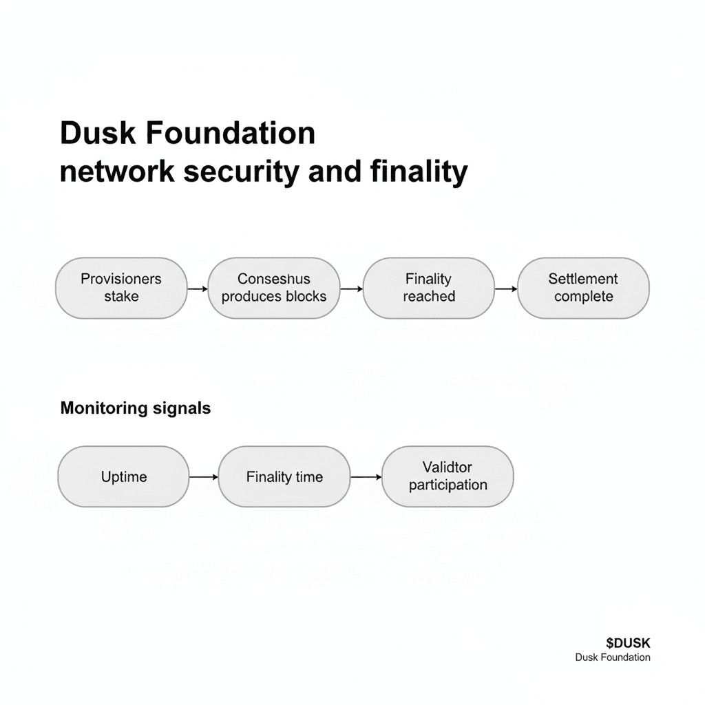 Bezpieczeństwo traktowane jest jako podstawowa zasada. Dusk inwestuje znaczne środki w testowanie, przeglądy i staranne projektowanie protokołów. Ta praca jest powolna i często niewidoczna, ale definiuje, czy instytucje mogą ufać systemowi. Zasady konsensusu, komunikacja w sieci i zachęty ekonomiczne są zaprojektowane tak, aby działały w sposób spójny. Instytucje nie ufają obietnicom. Ufa się systemom, które działają w ten sam sposób pod presją.