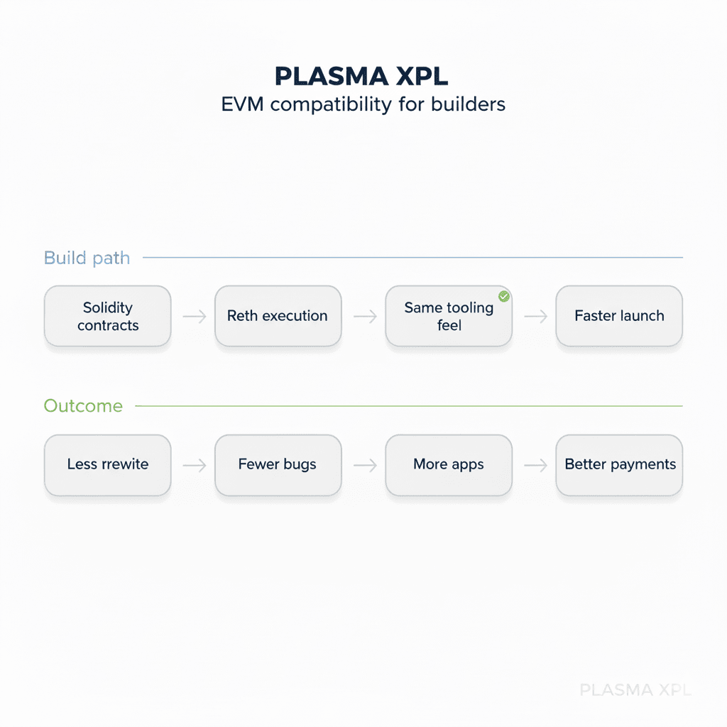 Techniczna podstawa Plasma wspiera to skupienie. Używają środowiska wykonawczego w stylu Ethereum, co oznacza, że inteligentne kontrakty zbudowane dla systemów EVM mogą działać tutaj bez większych zmian. To ma znaczenie, ponieważ oszczędza czas i redukuje ryzyko. Deweloperzy już ufają tym narzędziom. Nie są zmuszani do odbudowywania wszystkiego od podstaw. Jeśli portfel, aplikacja płatnicza lub platforma finansowa już istnieje, można ją dostosować do Plasma, zachowując znaną logikę. To obniża barierę dla rzeczywistych produktów do uruchomienia i rozwoju.