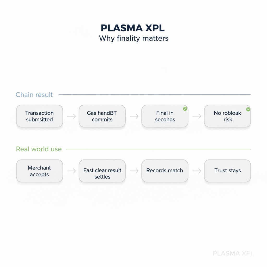 Szybkość jest kluczowa dla płatności, a Plasma jest zbudowana wokół szybkiej finalizacji. Ich projekt konsensusu koncentruje się na tym, aby transakcje były zakończone szybko i jasno. Gdy transfer zostanie potwierdzony, jest zakończony. Nie ma długiego okresu oczekiwania i żadnej niepewności. Dla kogoś otrzymującego środki ta klarowność ma znaczenie. Dla firm i usług płatniczych jest to niezbędne. Muszą wiedzieć, że gdy pieniądze przyjdą, są one rozliczone i nie mogą być później odwrócone. Plasma jest zbudowana z tym wymogiem w swoim rdzeniu.